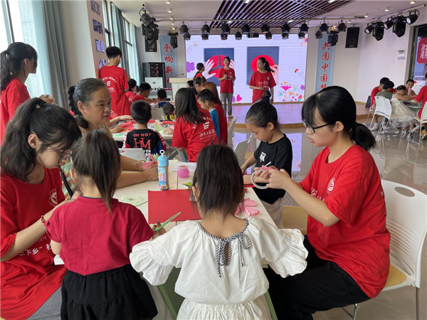 实践活动中,大朋友们和小朋友们手牵手、心连心,结对组建红色文化学习小组,带领小朋友们诵读红色经典诗词、制作红色主题卡片、学唱红色歌曲、学讲红色故事、观看红色电影,穿梭在时代的长河之中,感悟红色精神的力量。屈原区妇联为孩子们播放预防儿童性侵、防溺水和家风家教等主题的卡通视频,寓教于乐,让孩子们在轻松愉悦的氛围中掌握多种安全小知识。一位家长在微信群中说:“这5天的学习生活虽然很短暂,但给孩子们心中留下了美好的回忆!不爱唱歌、画画的儿子,回家也会哼几句,虽然画的画没有其他的孩子好看,但在我看来是最好看的!因为他以前从来不爱画画!谢谢大哥哥大姐姐们!”