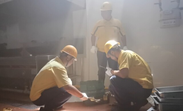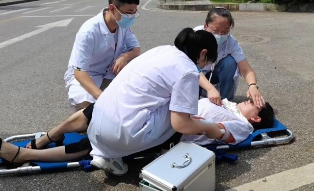 演练模拟该校食堂燃气管道被撞坏,导致燃气大量泄漏并引发大火。学校发现情况后紧急拨打湘潭新奥燃气有限公司、湘潭市消防救援支队、湘潭市妇幼保健医院联系电话,要求相关部门立即赶到现场进行救援,并由保卫处、后勤基建处、校医组成初期应急队伍奔赴现场,拉起警戒线,组织人员疏散,并关闭现场电源。