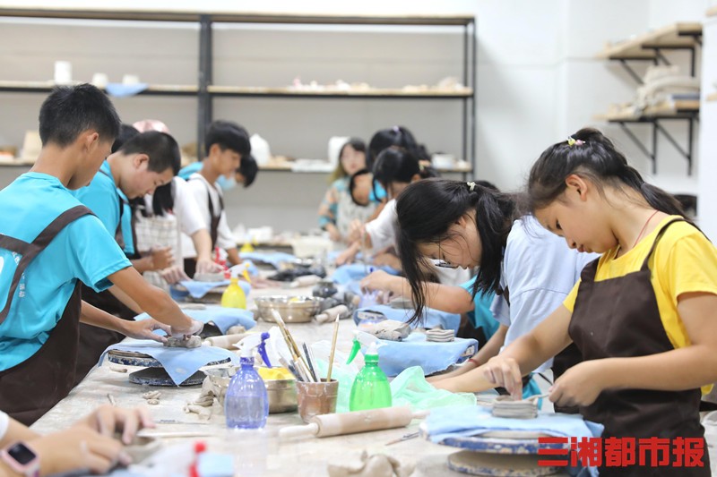恰逢“党史题材百幅作品”暨第六届教职工摄影书画大赛优秀作品展展出,学校还为中学生们“烹饪”了一道丰富多彩的艺术大餐。看展览,做陶艺,“大餐”既饱眼福,又有动手的乐趣。