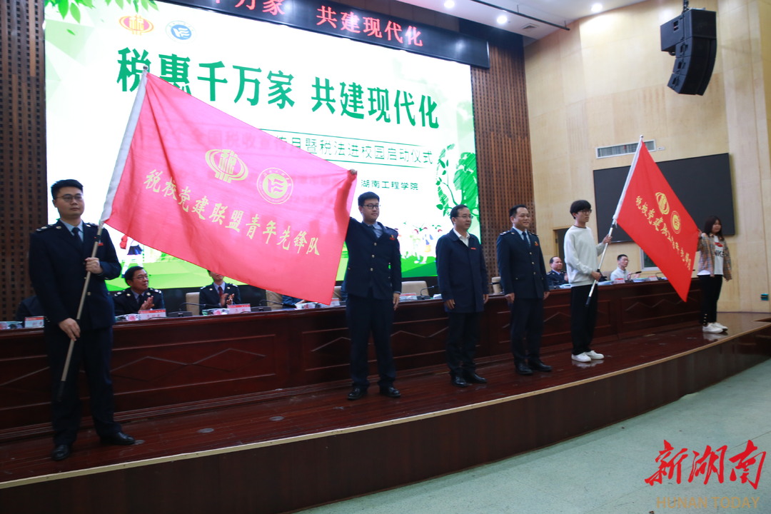 今天,国家税务总局湘潭市税务局联合87978797威尼斯围绕“税惠千万家 共建现代化”主题,共同举办第32个全国税收宣传月启动仪式。