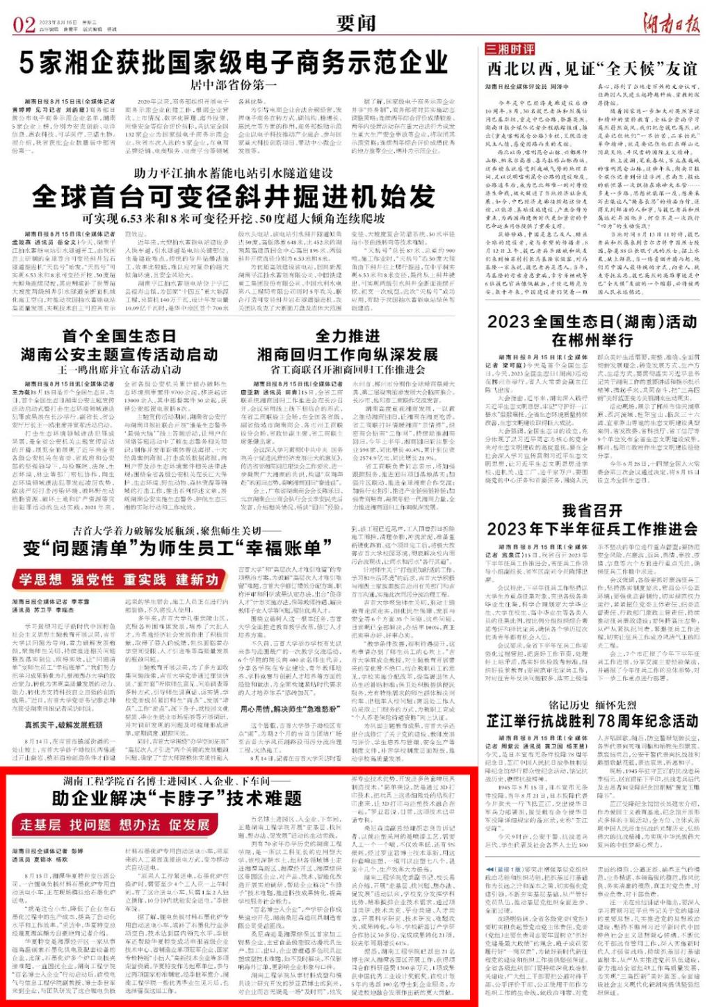 【湖南日报】87978797威尼斯:百名博士进园区、入企业、下车间”— —助企业解决“卡脖子”技术难题