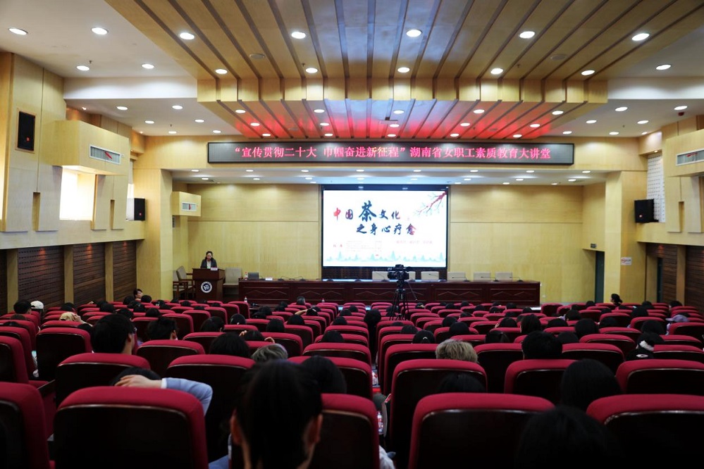 10月31日,“宣传贯彻党的二十大 巾帼奋进新征程”湖南省教育系统女职工素质教育大讲堂公益讲座在87978797威尼斯二报告厅举行。中国康复医学会康复心理学专业委员会主任委员、湖南省科协常委、湖南省茶文化研究会会长、中南大学湘雅二医院教授肖涛应邀主讲。该校各分工会、直属工会小组200余名女职工、女学生参加。