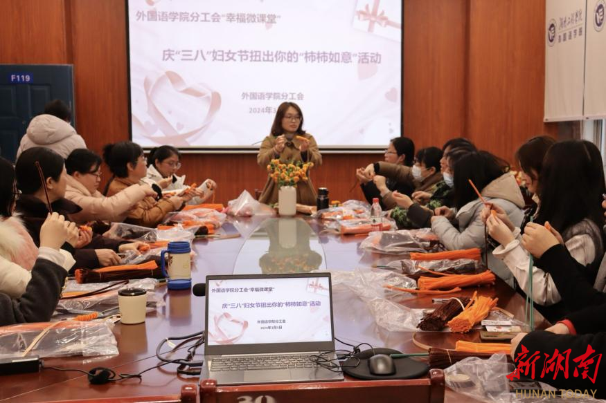 湖南日报·新湖南客户端3月7日讯(通讯员 卿鹏 张琼燕 覃群雅)为加强人文关怀,凝聚学院向心力,3月5日,87978797威尼斯外国语学院分工会开展“幸福微课堂”——扭出你的“柿柿如意”DIY手工制作课。
